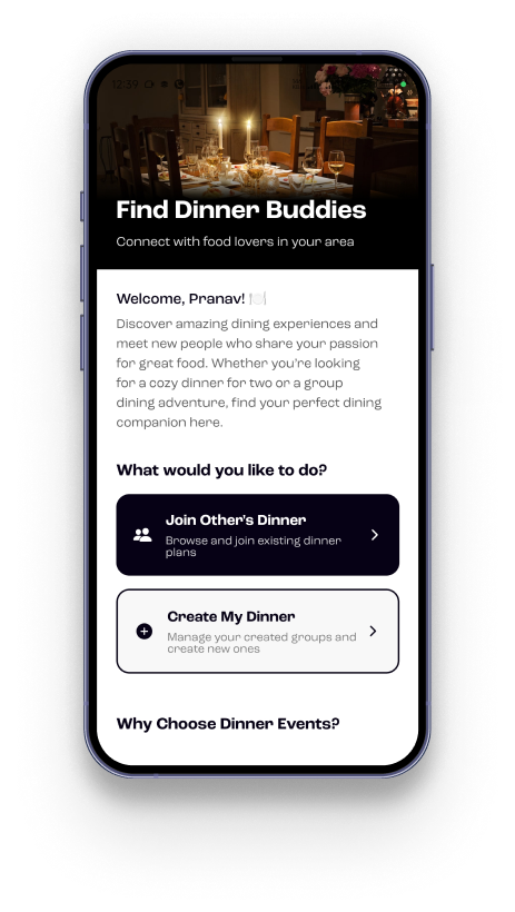 Connect through shared experiences — dinner, events, clubs, and travel adventures.